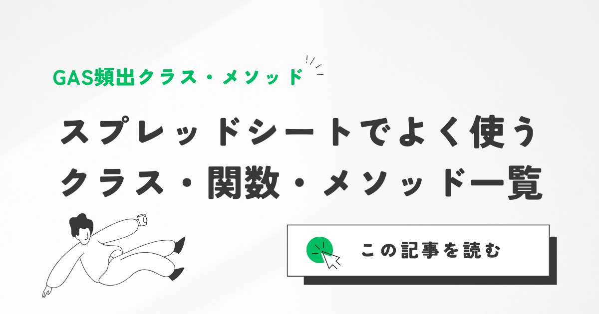今回は、スプレッドシートに焦点を当てて、よく使うGASのクラス・メソッド一覧をご紹介いたします。