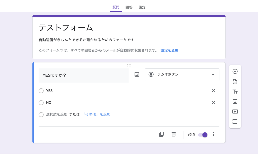 Googleフォーム標準の機能設定を利用する
