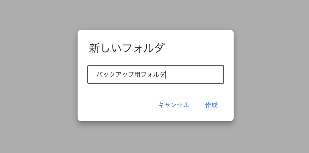 まずは、バックアップするためのフォルダを作成して下さい。フォルダ名はお任せします。